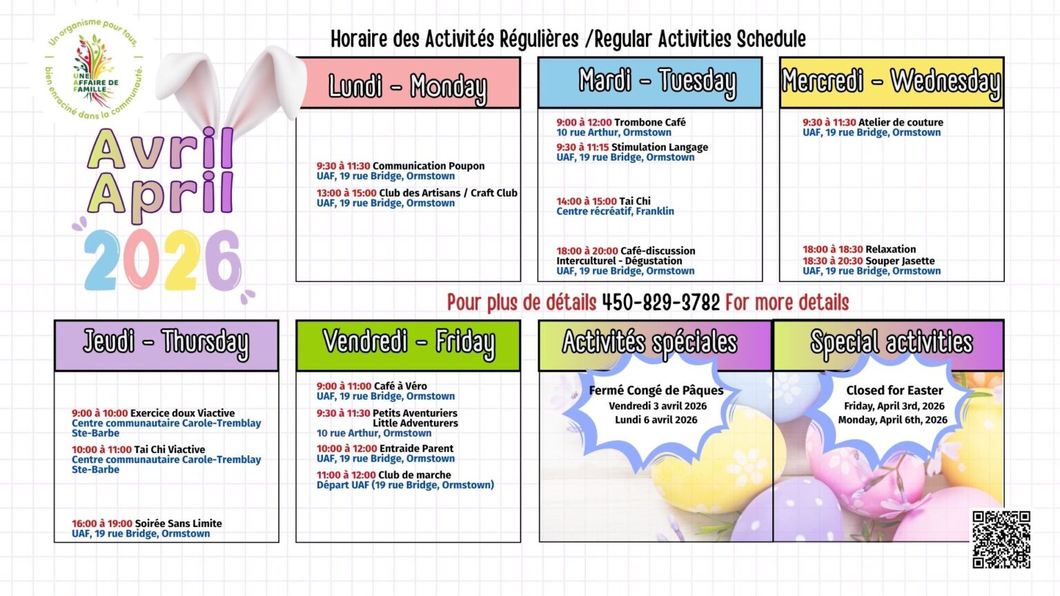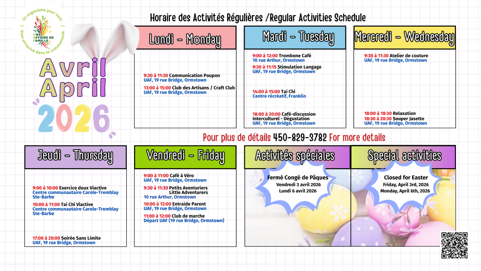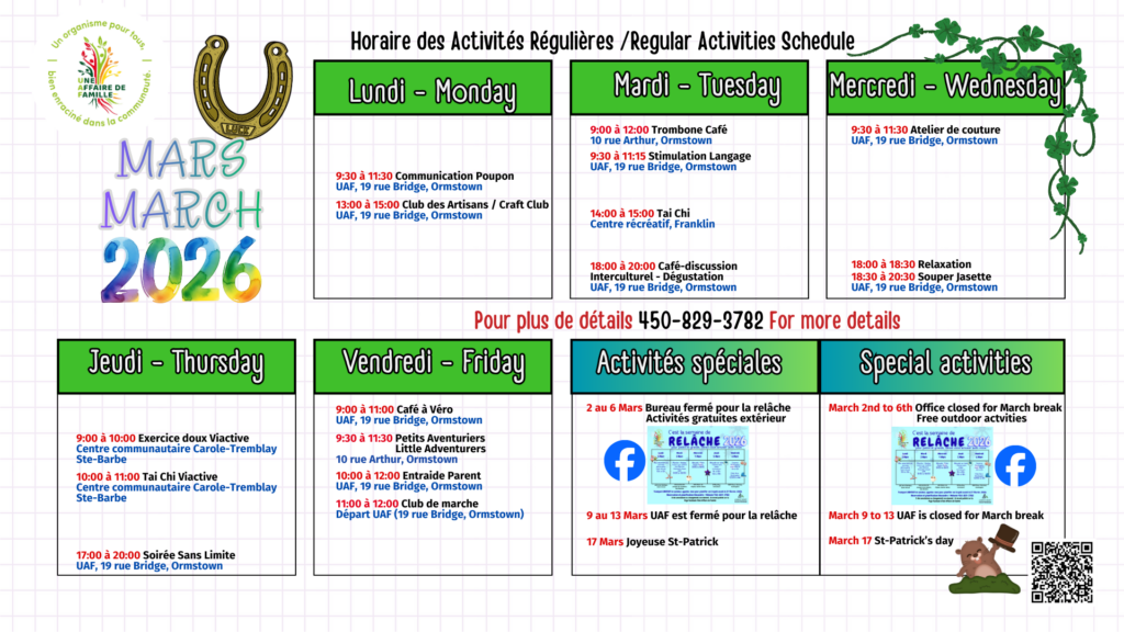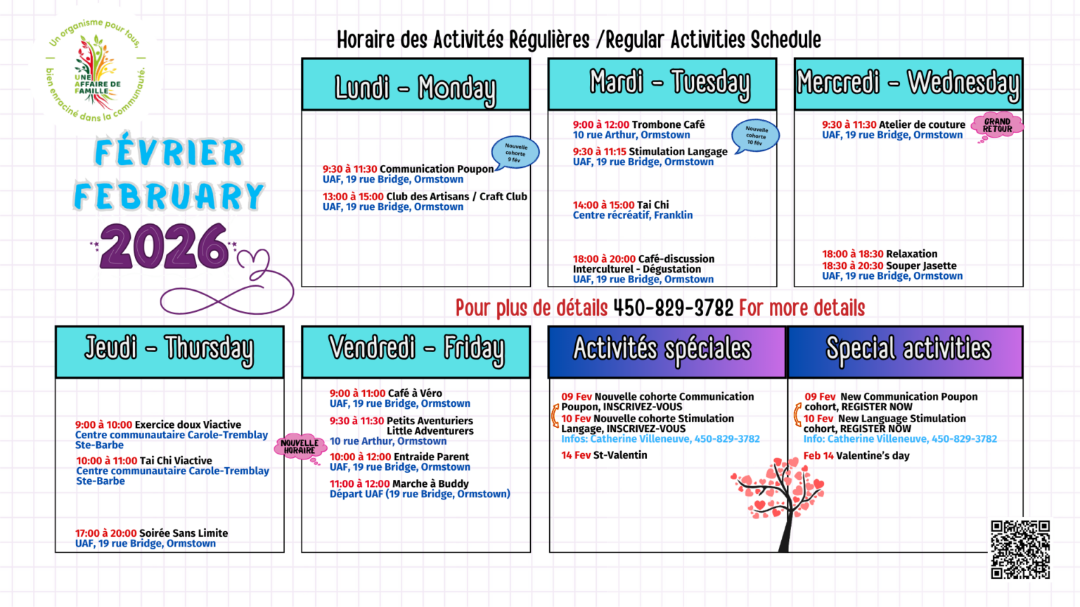 Lundi au vendredi : 8h30 à 16h00